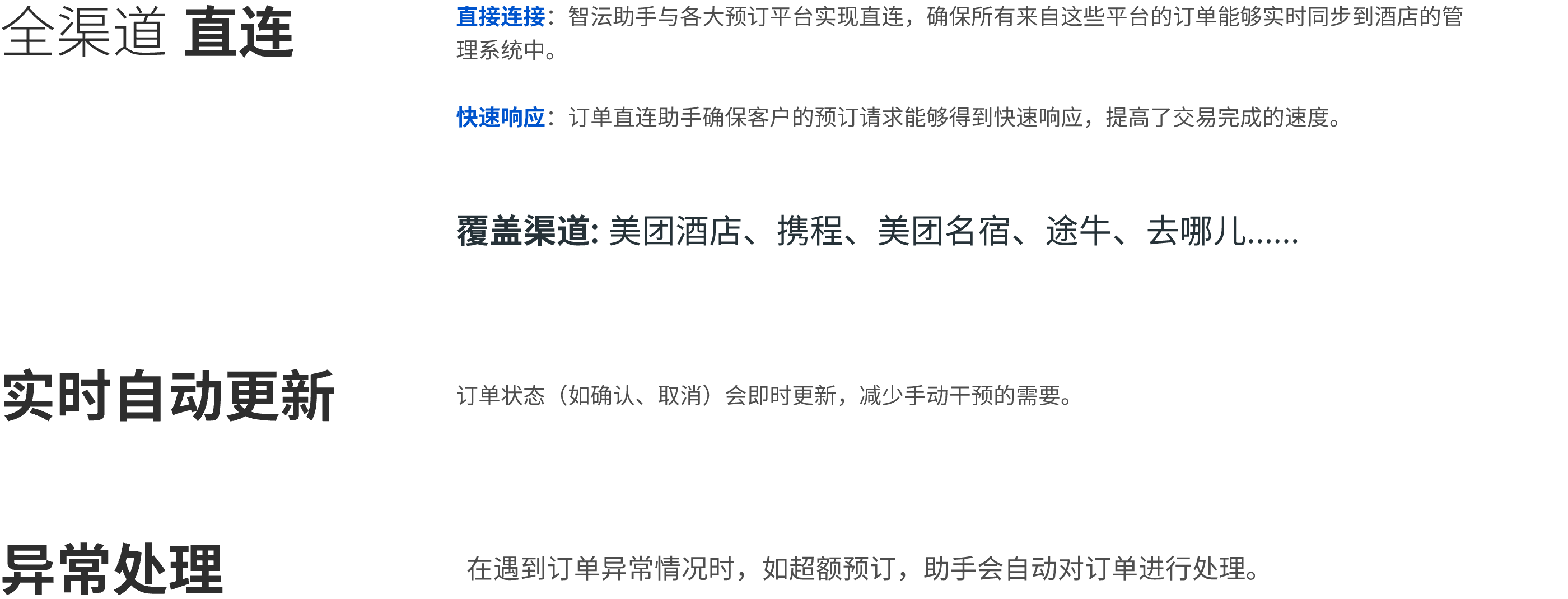 实现实时预订同步,与各大预订平台实现直连,大大简化预订流程,提高处理订单的效率。