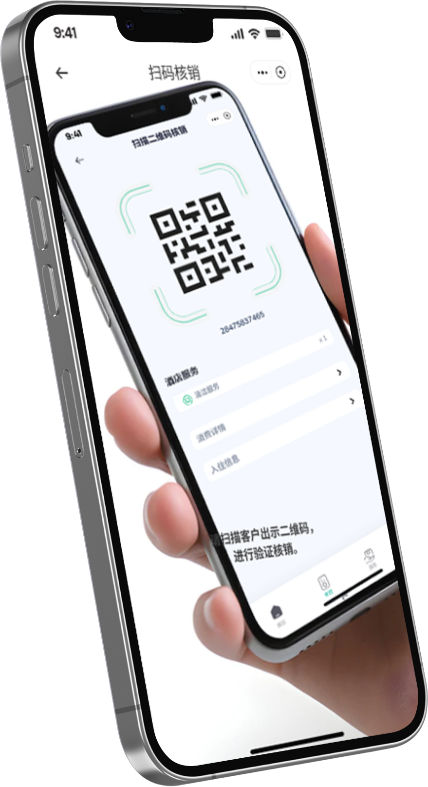 快速扫描:商家使用小程序的扫一扫功能,对准客户手机上的二维码即可完成核销,过程简单迅速。
