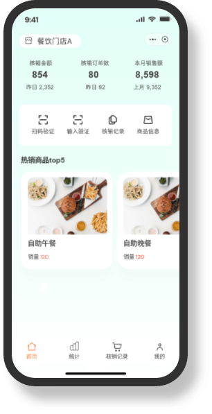 为商家提供了一种快捷高效的核销方式,包括扫码核销和输入验证码核销。